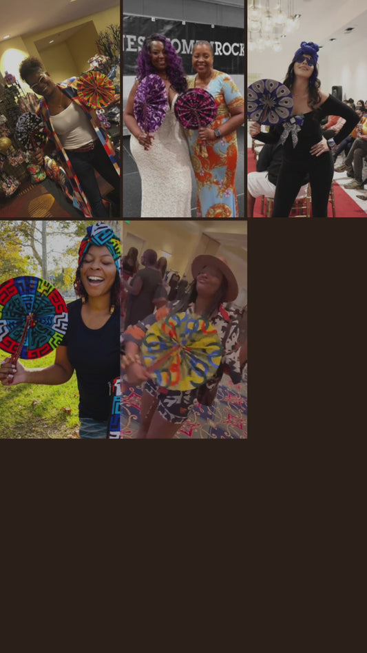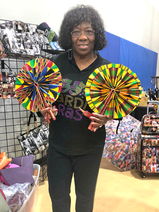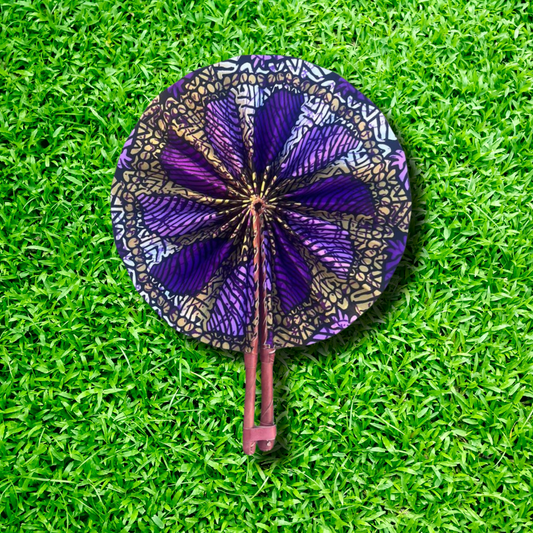 Flower Mudcloth Foldable Ghanaian Ankara Leather Fan