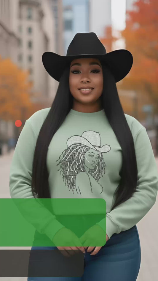Frosty Green Afro Queen Colorful Cowgirl Rhinestone Sweatshirt