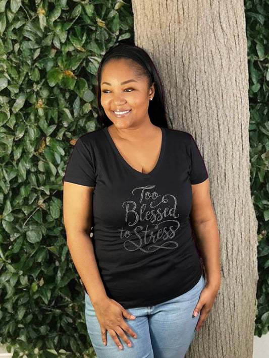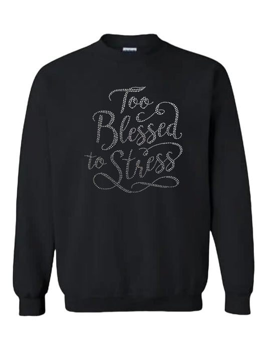 Too Blessed to Stress Rhinestone Unisex Sweatshirt