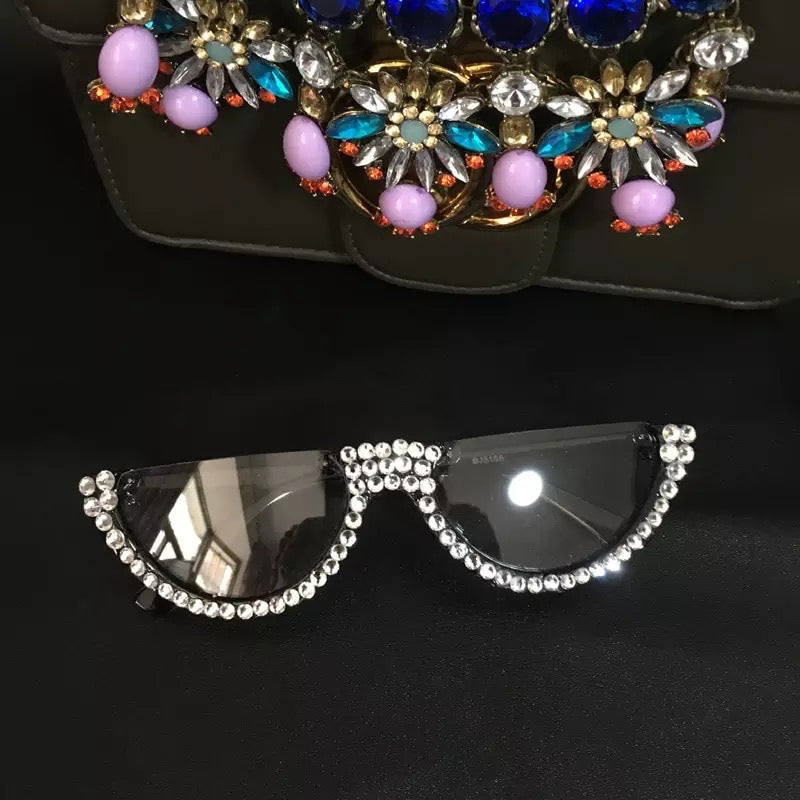 Beautiful bling glasses to compliment any outfit! The frame is black and the rhinestones are clear. Bling everything!