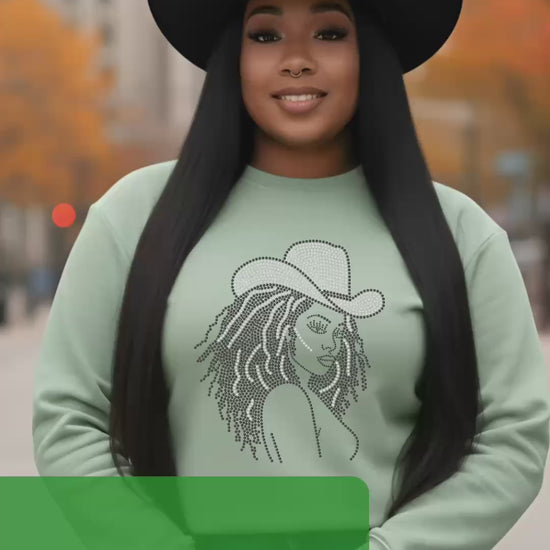 Frosty Green Afro Queen Colorful Cowgirl Rhinestone Sweatshirt
