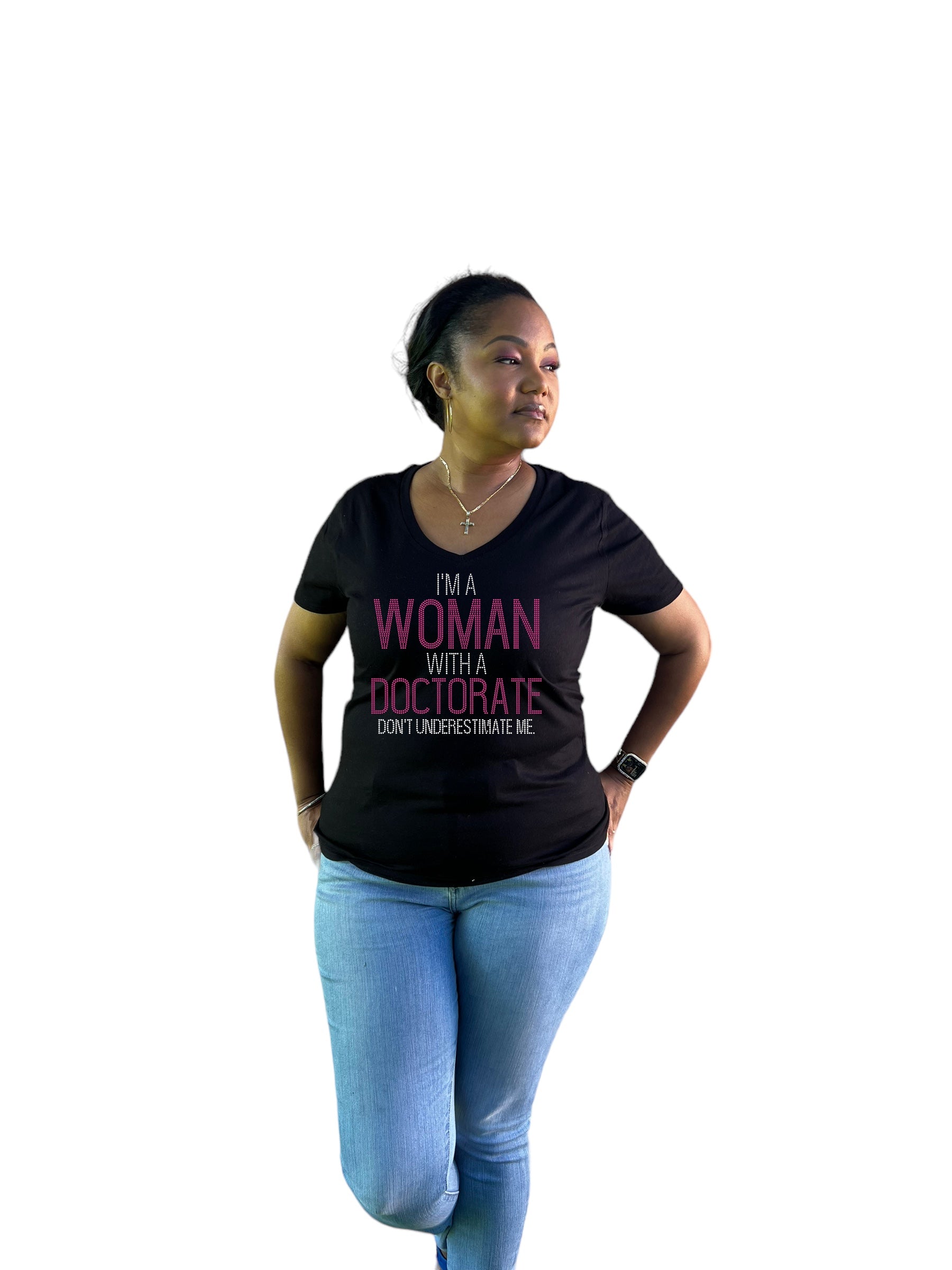 I'm A Woman with a Doctorate Rhinestone T-shirt