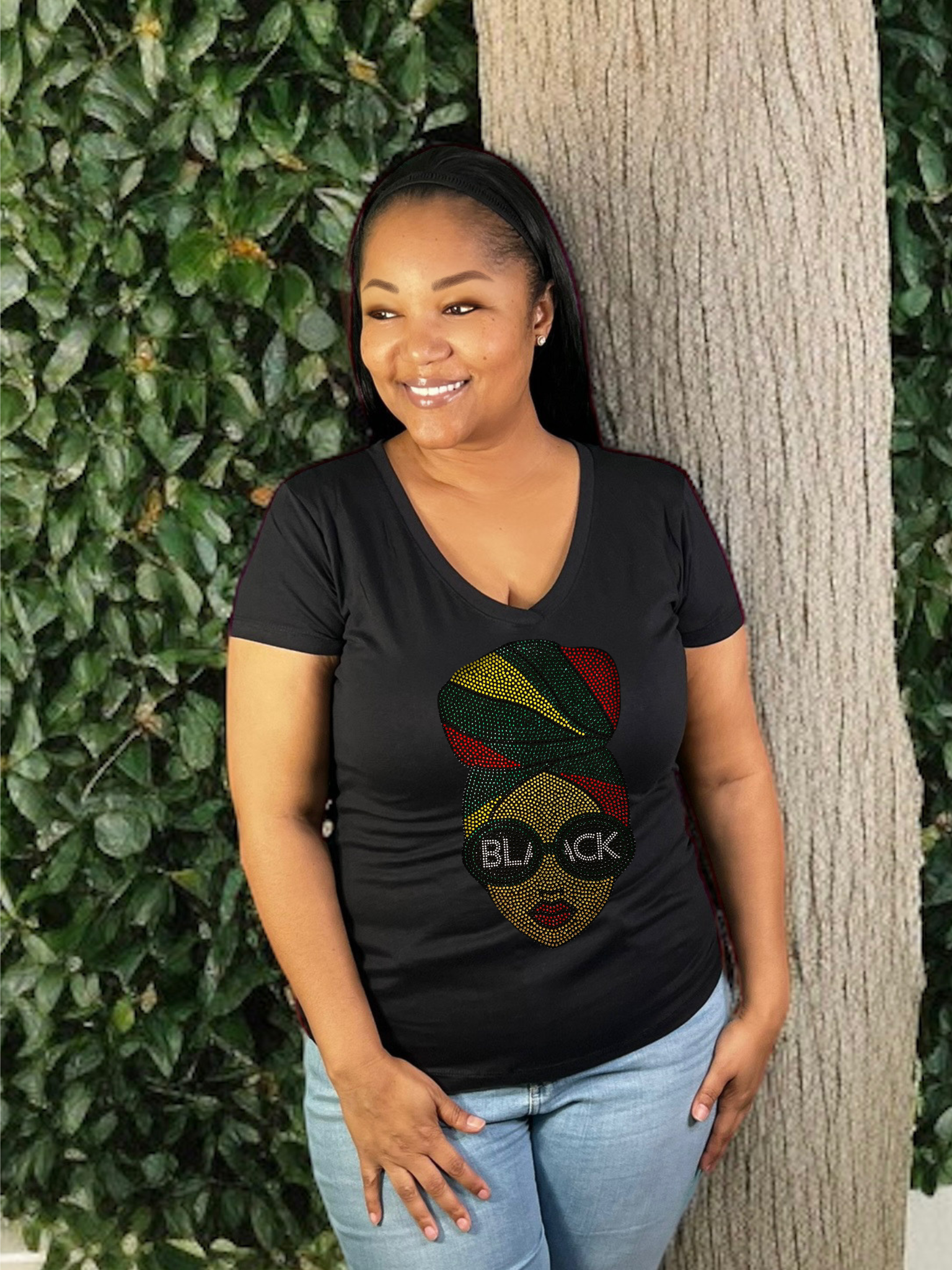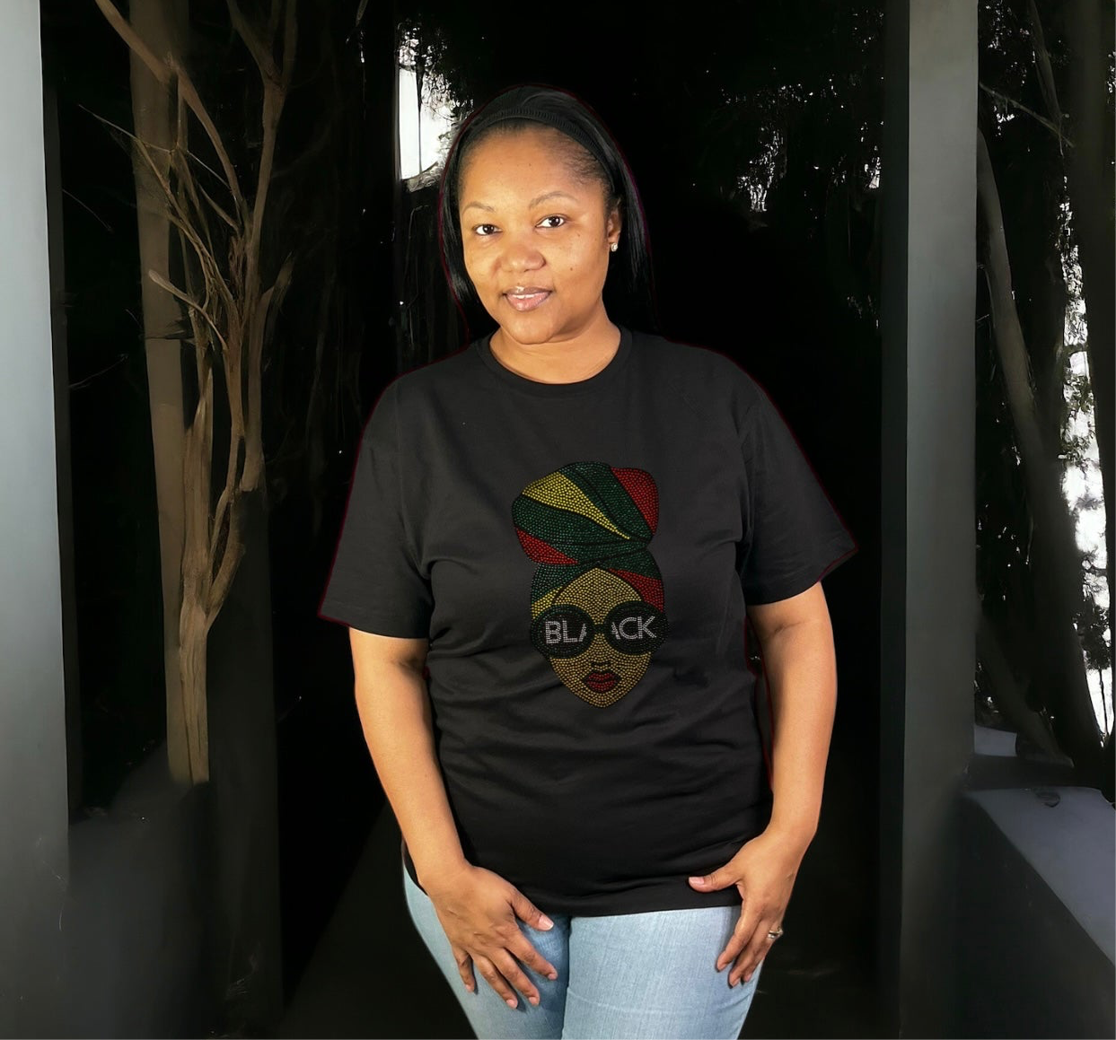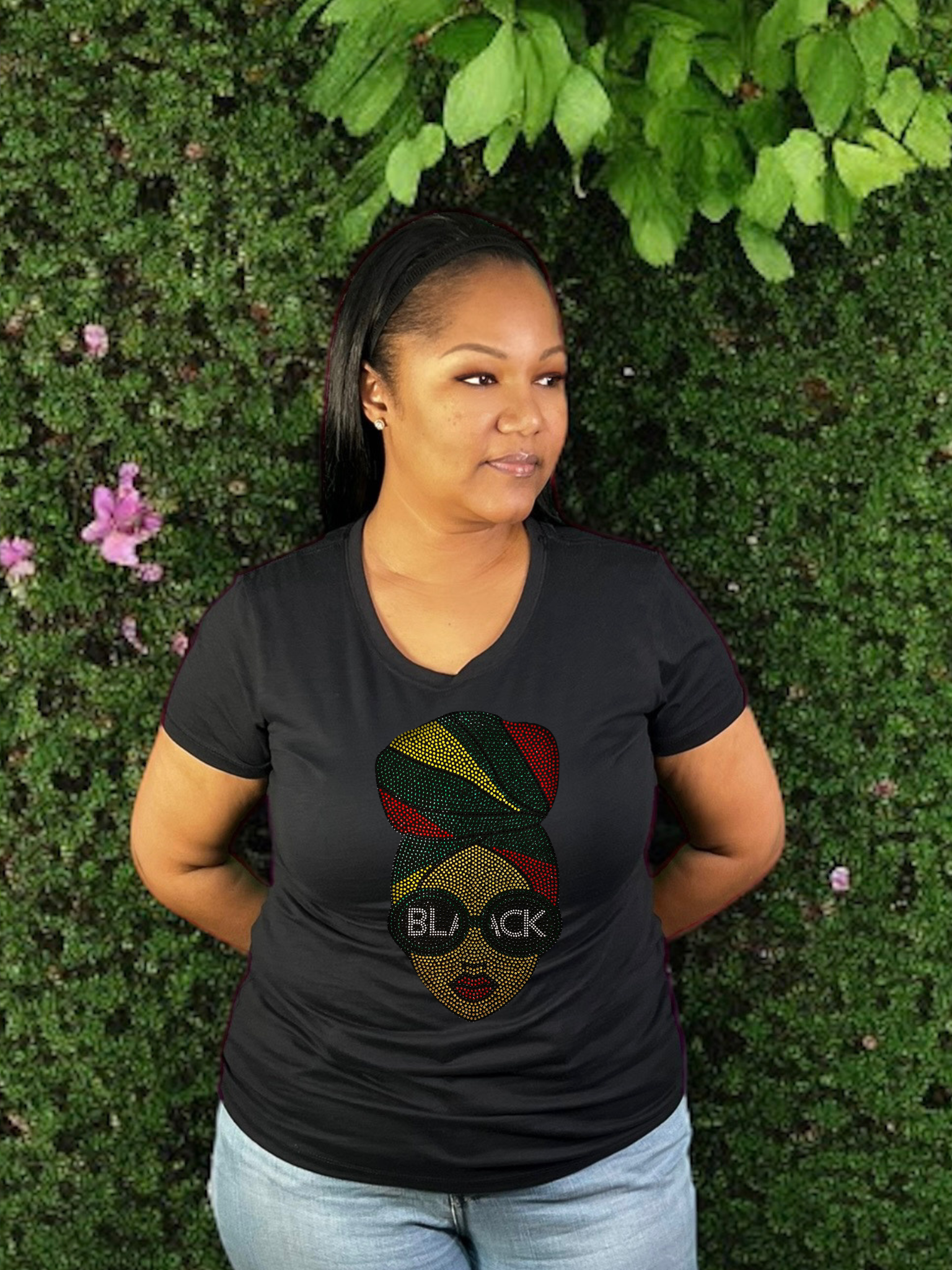 Add some bling to your everyday look with our handmade rhinestone T-shirts! The soft material and bold rhinestone message make this tee perfect for dressing up or dressing down for work, events, outings, and/or gifts.